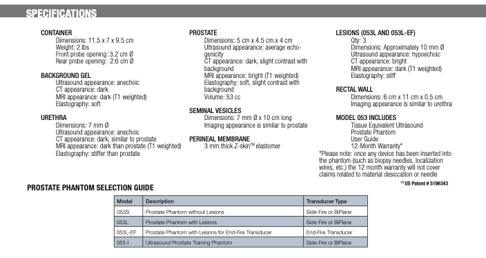该模体有病变(053L)和无病变(053S)两种,可按标准侧射配置或为端射探头(053L- ef)优化的替代几何形状订购。