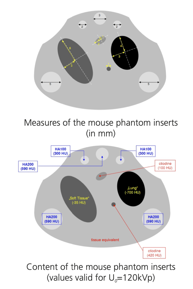 QRM - microct - mouse - phantom测量小鼠模体插入(单位:mm)组织当量