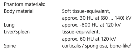 所有使用的材料都模拟了真实人体组织的物理x射线衰减特性和密度。
