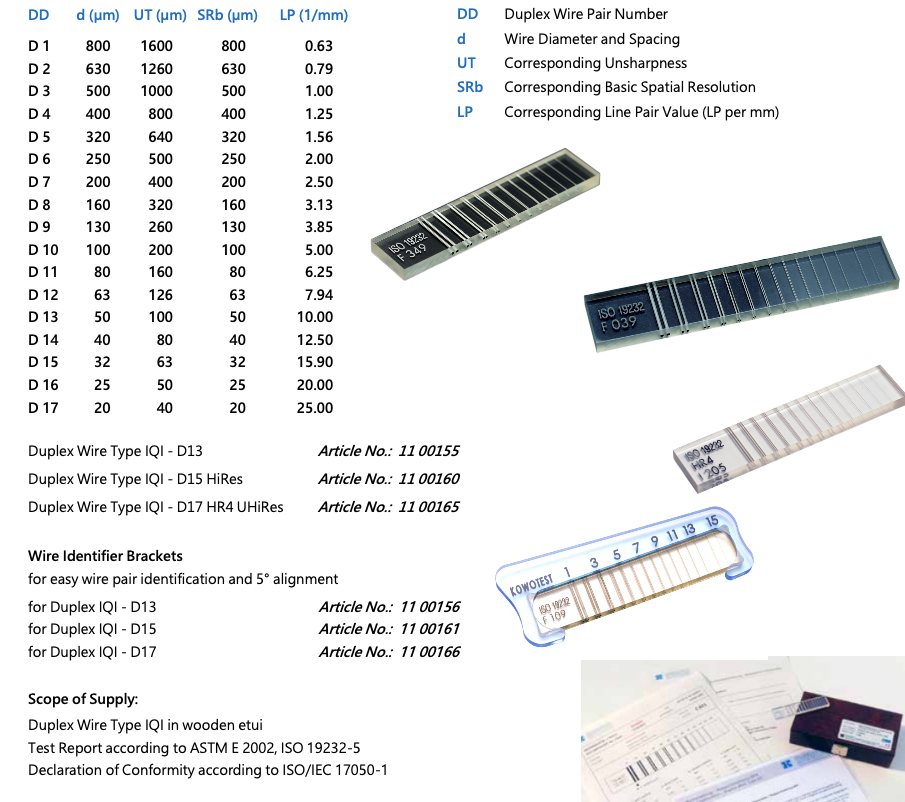 德国Kowotest Duplex IQI型 双线型像质计 D13,D15