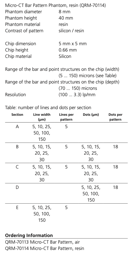 型号:micro-CT bar pattern phantom
