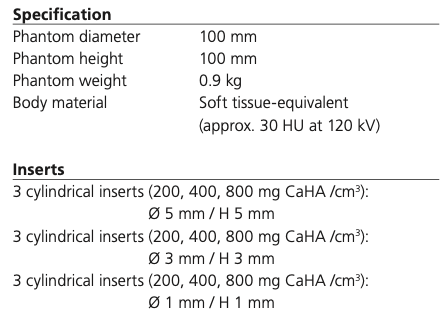 型号: Calcium Scoring Phantom, D100