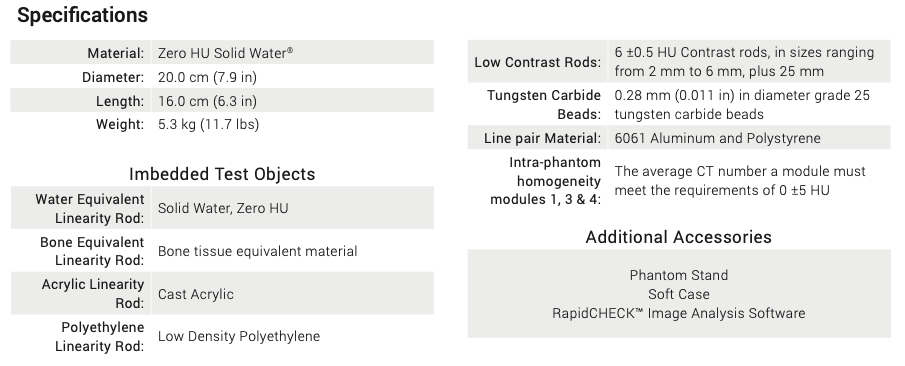 • 唯一需要满足美国放射学院(ACR)认证指南的模体