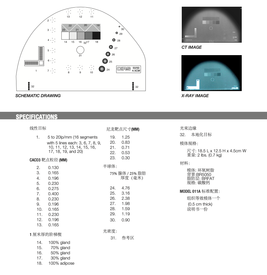 美国CIRS 011A 型乳腺x线摄影的组织等效模体