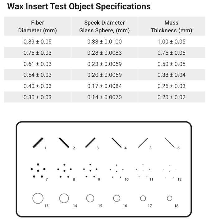 mamo FFDM Phantom允许测试MQSA 3.0 mGy剂量限制。衰减是均衡的内部和外面的蜡插入。测试对象是根据ACR规范设计和定位的,包括尼龙聚酰胺纤维,球形玻璃微粒和球形帽块。